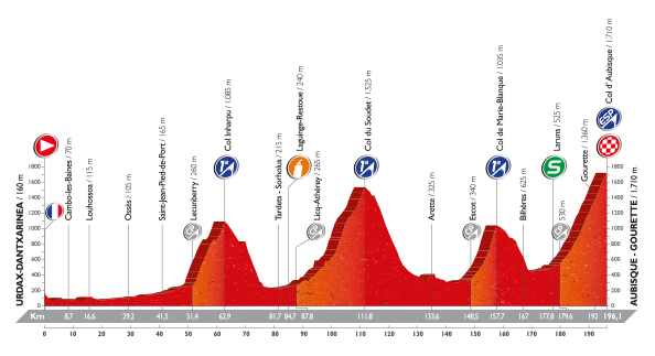 14ª etapa: Sábado, 3 de septiembre. Urdax Dantxarinea (12:04)-Aubisque (Francia) (17:22), 196,1 kms