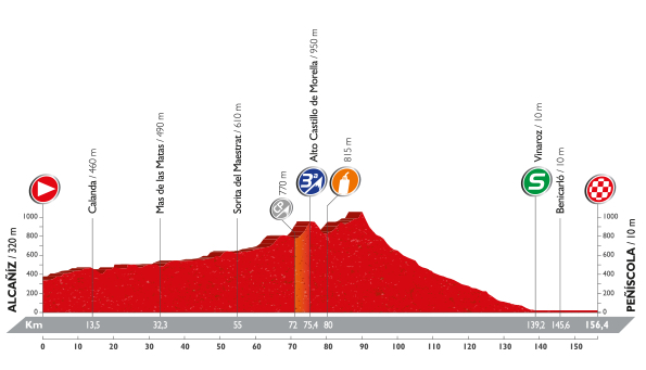 16ª etapa: Lunes, 5 de septiembre. Alcañiz (13:57)-Peñíscola (17:30), 156,4 kms