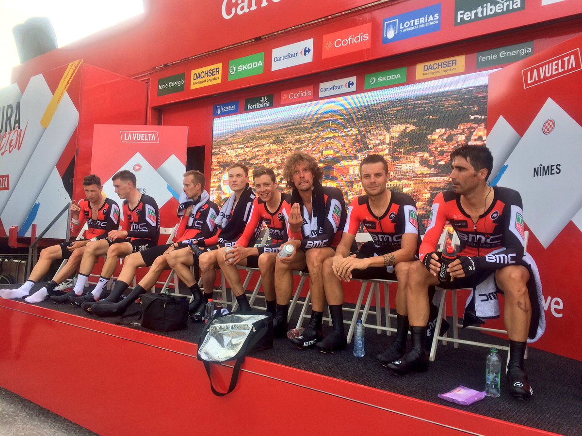 El recorrido, nada apropiado para que los conjuntos especialistas pudieran desarrollar todo su potencial en la especialidad, premiaba sin embargo a los dominadores históricos del mundial de crono por escuadras, gran escaparate de esta modalidad ciclista. Así, BMC no defraudaba y pulverizaba el tiempo de todos sus rivales con un tiempo de 15:58 vistiendo al australiano Rohan Dennis con el primer maillot rojo de líder de esta edición de la carrera.