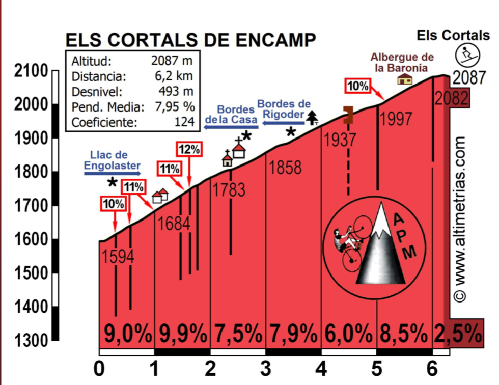 Análisis de Rafa Mora (periodista): «Una cosa es subir Cortals d’Encamp desde abajo, que hacerlo desde el camino de les Pardines, el camino del sterratto que incluye esta etapa. Esa subida se torna entonces más llevadera. Desde la salida del sterratto, es un puerto sin grandes pendientes. Tal vez al principio, un par de kilómetros, pero luego el único pero lo pone la altitud. Dos partes: la primera, dura, la segunda, hacia meta, de remar fácil».