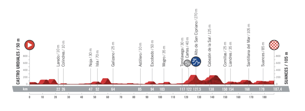 Cantabria y Navarra acogerán de nuevo sendas en la próxima edición de la Vuelta a España, que se presentará el próximo 18 de diciembre. Con salida en la localidad de Castro Urdiales y llegada en Suances, sería una jornada de trazado rompepiernas, aunque todavía no se conocen más detalles. Pablo Zuloaga, consejero de Deportes de la Comunidad autónoma cántabra, sí ha confirmado «100% seguro» que la Vuelta volverá a la región en declaraciones para ifomocantabria.es.