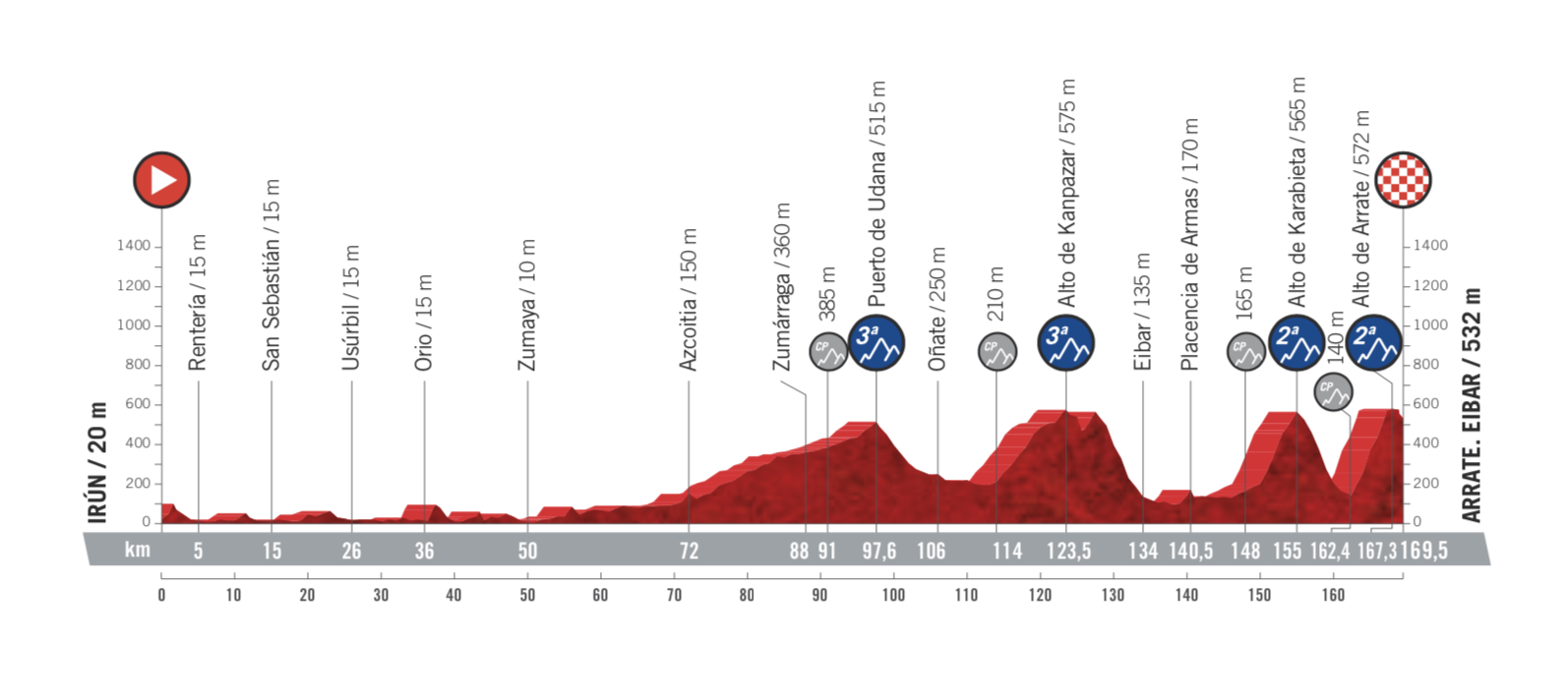 1ª: Martes 20 octubre. Irún (13:11)-Arrate (17:18), 169.5 kms