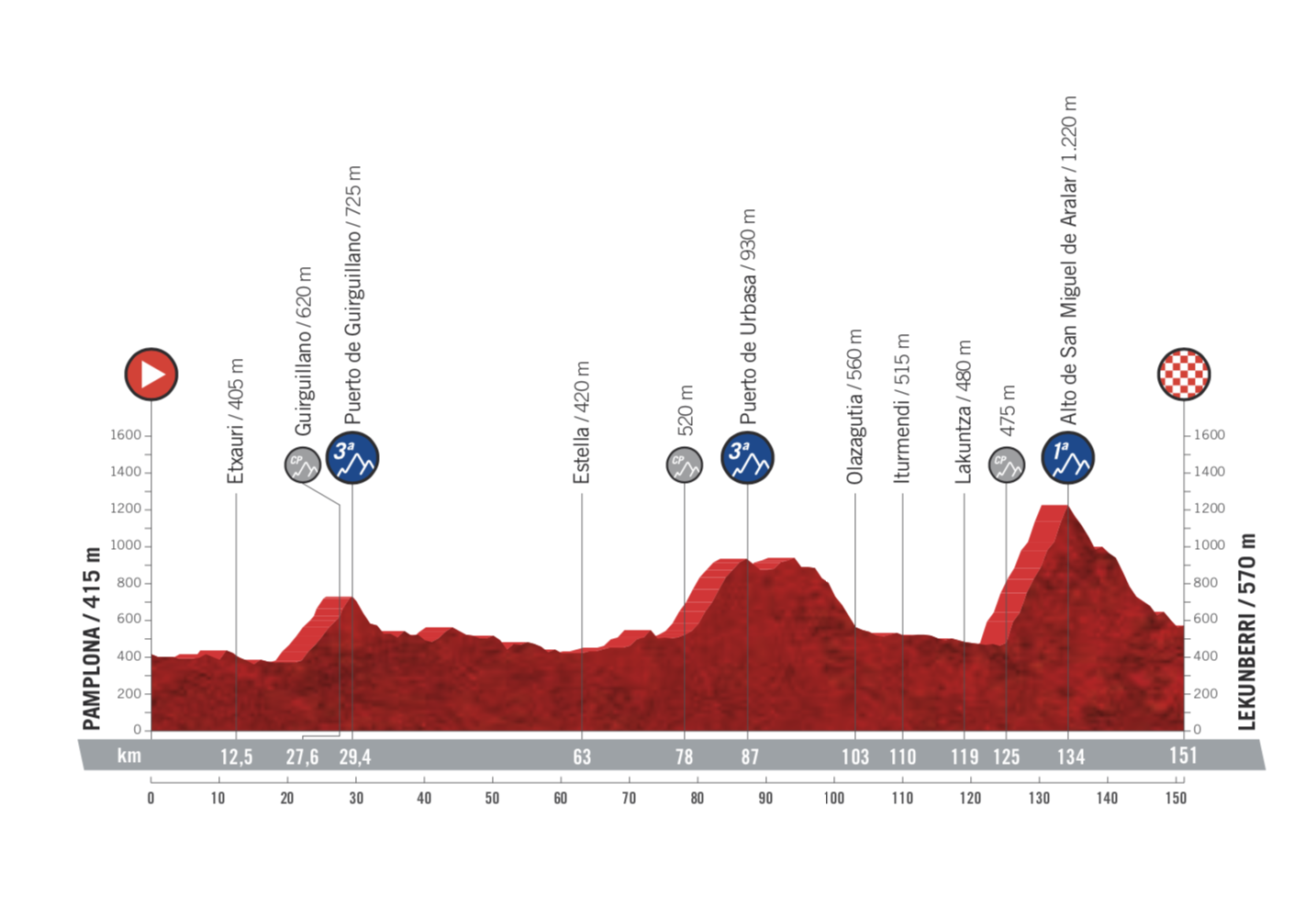 Por otra parte, el Diario de Navarra ha adelantado que su comunidad foral tendrá un final en Lekunberri. Localidad a la que se llegará previo paso por el hormigón del exigente puerto de San Miguel de Aralar -por la vertiente de Uharte Arakil- y con posible salida de esa jornada, la quinta del menú, desde la capital Pamplona. Un perfil que de momento está en vías de diseño.