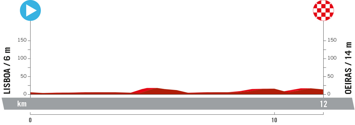 1ª: Sábado 17 agosto. Lisboa (Portugal) (17:23)-Oeiras (Portugal) (20:30), 12 kms contrarreloj individual
