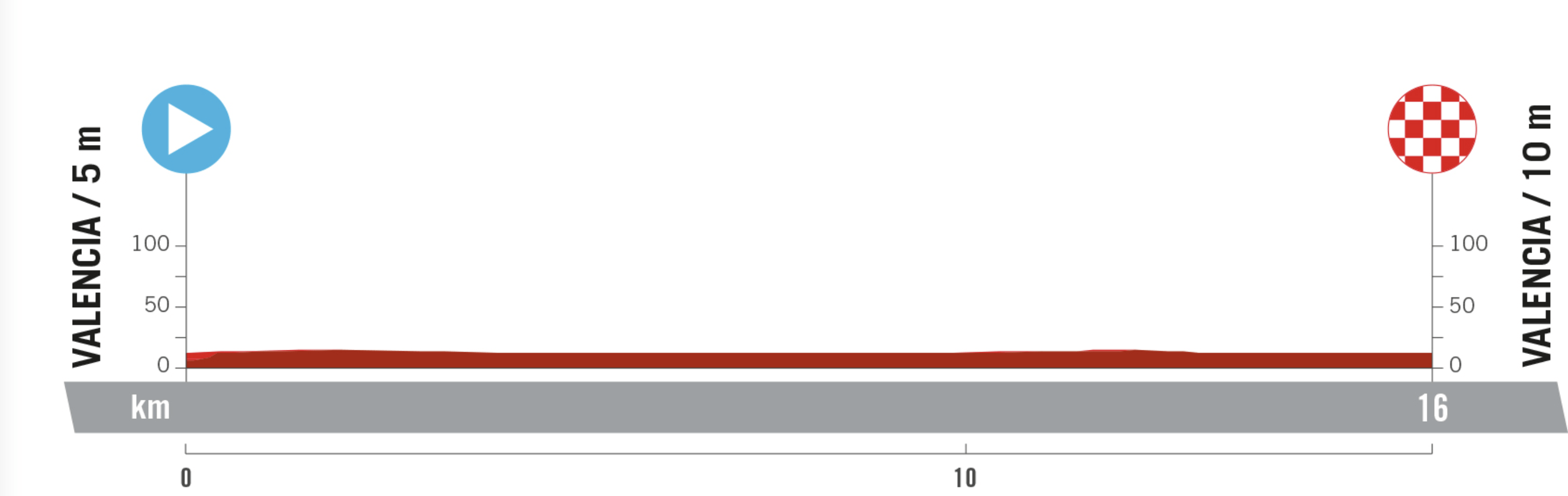 1ª: Domingo 28 abril. Valencia (15:56)-Valencia (17:15), 16 kms contrarreloj equipos