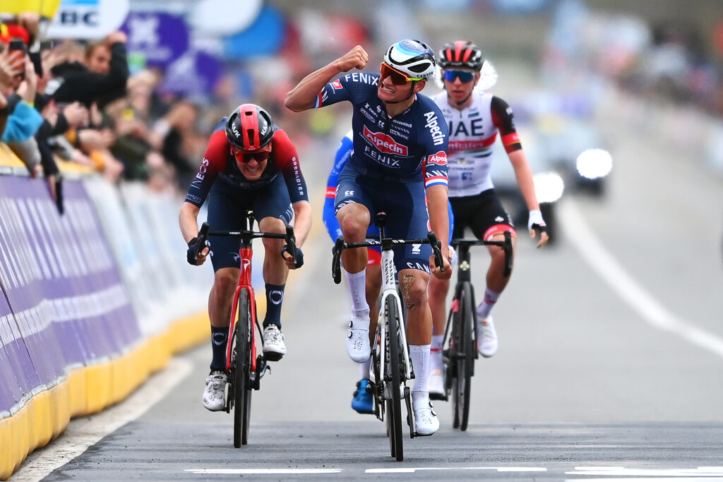 En la última subida al Paterberg, Van der Poel sufrió más de lo que desearía para seguir la rueda de Pogacar. El neerlandés tiró de experiencia y de recursos en este tipo de carreras para que no se le marchara el esloveno. En el momento cumbre, en los metros finales del Paterberg, Mathieu tuvo que salirse del adoquinado ante el empuje de Pogacar. Una vez coronado, ambos enfilaron los últimos kilómetros a base de relevos, sabiendo que la victoria se la jugarían al esprint.