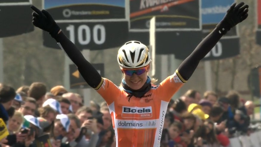La neerlandesa, fortísima, puso tierra de por medio y se acopló a su bicicleta para afrontar una parte final de padecimiento extremo. Ella sola contra los elementos y el grupo perseguidor. Metió la cabeza entre los hombros y, sin mirar atrás, se centró en su faena. No sólo no permitió que las perseguidoras le comieran terreno sino que siguió aumentando su renta hasta llegar a la meta de Oudenaarde con 1:07 de renta sobre Amy Pieters y Annemiek van Vleuten que evidenciaron el enorme dominio que Países Bajos ejerce en el ciclismo femenino.