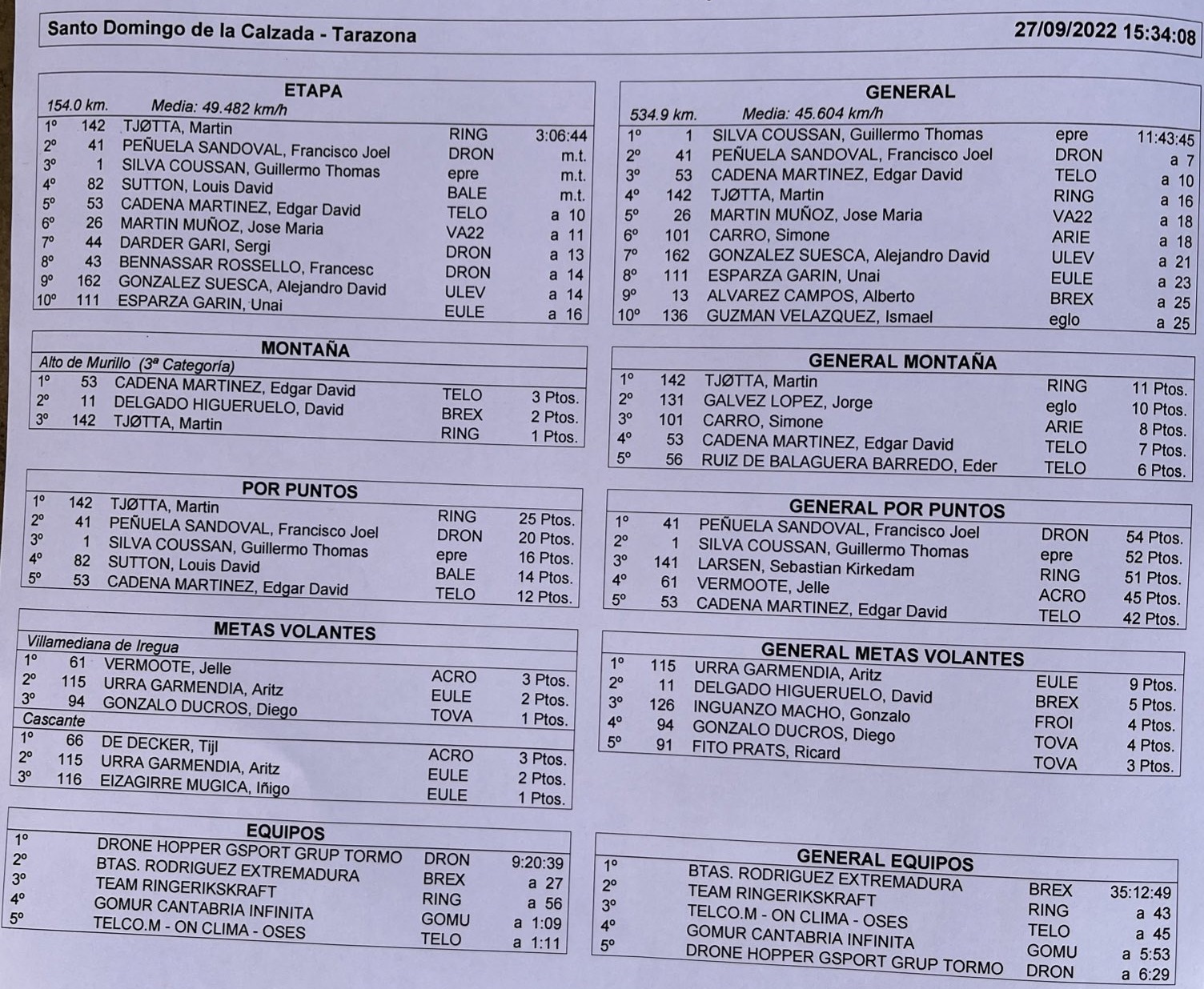 CLASIFICACIONES COMPLETAS: Sebastian LARSEN (NOR) 4 José María MARTÍN / General: Thomas SILVA (URU)