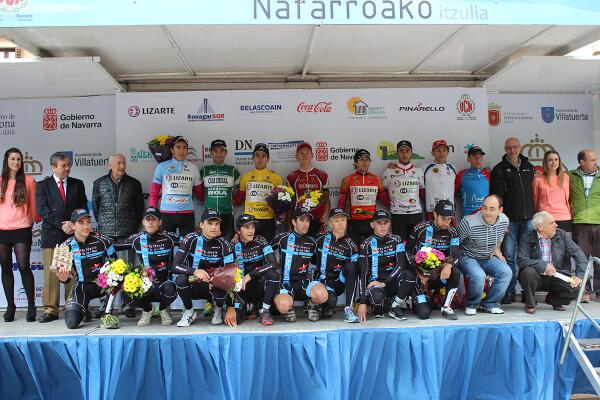 Lejos ya, aunque vivo en la memoria, el recuerdo del éxito de Santiago Segú en 2003 al batir por tan sólo 1″ al húngaro Rohtmer, Antonio Pedrero ha logrado si cabe con más emoción para Lizarte y para la estructura que dirige Manolo Azcona uno de los éxitos más emotivos en casi una década de patrocinio. El barcelonés ha mantenido hasta la meta de Pamplona el maillot amarillo de una 53ª Vuelta a Navarra que se decidía este sábado con nada menos que seis puertos –Grocin (3ª), Guembe (1ª), Zuarrarrate (2ª), Uitzi (3ª), Usateguieta (2ª) y Gorostieta (1ª)- en los 146 kilómetros con salida en Suministros Monjardín (Estella), repletos de viento, tensión y alternativas. Ello, en la carrera que recordaba al malogrado José Luis Oreja, alma del ciclismo en la comunidad foral y uno de los mayores baluartes del conjunto de la AD Galibier durante los últimos años.