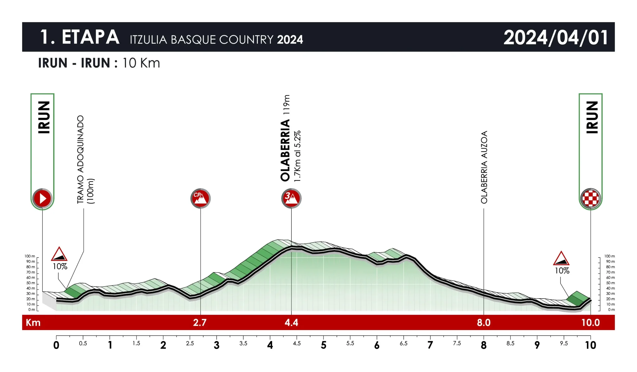 1ª: Lunes 1 abril. Irún (14:10-Irún (17:30), 10 kms contrarreloj individual