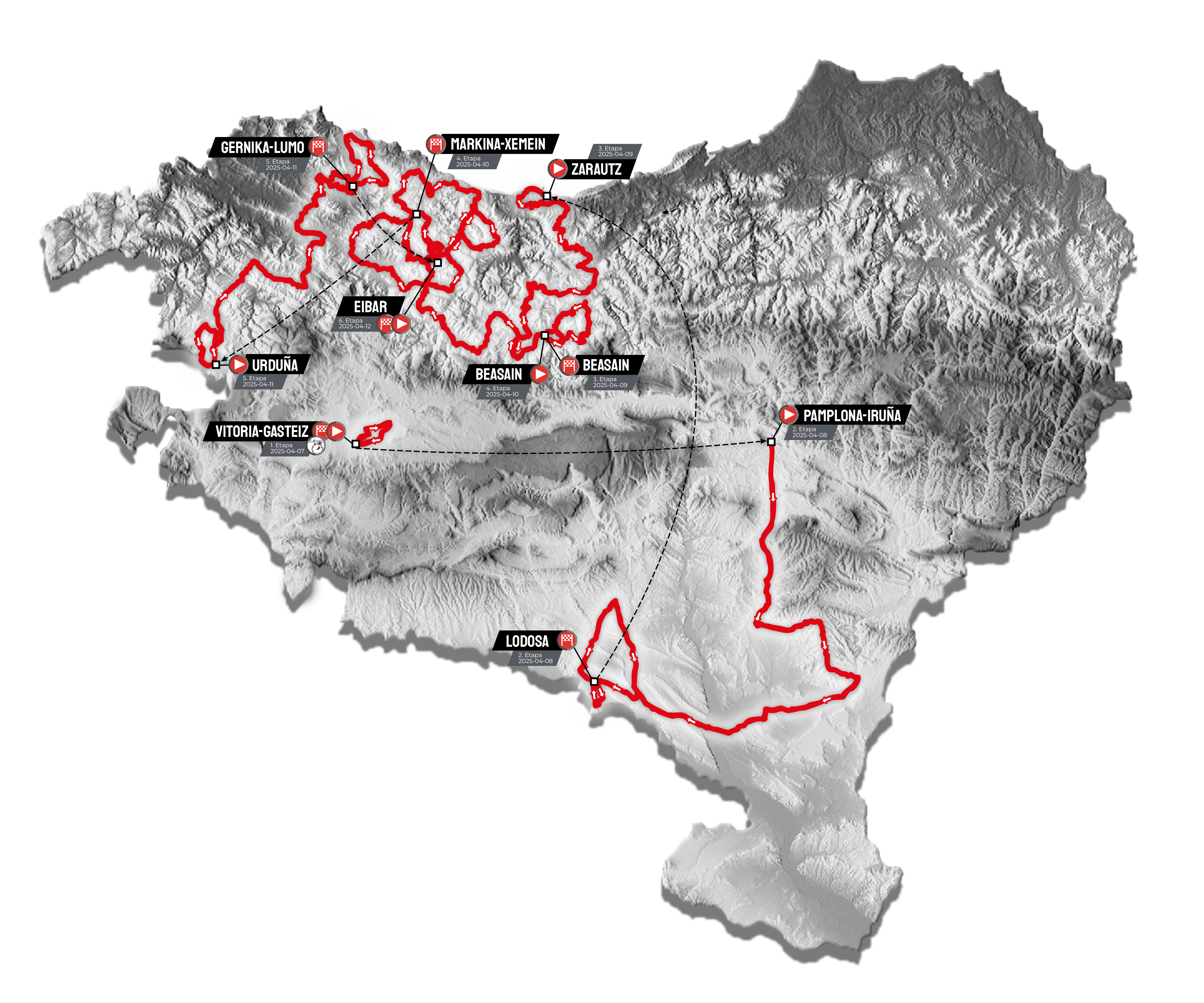 La 64º edición de la Vuelta al País Vasco, oficialmente denominada Itzulia Basque Country, se desarrollará entre el 7 y el 12 de abril. La competición dará inicio, al igual que el año pasado, con una contrarreloj individual. Esta vez en Vitoria-Gasteiz, desde el Pabellón Fernando Buesa. La prueba continuará su curso hacia Navarra en una jornada que se presume abierta a velocistas entre los municipios de Pamplona y Lodosa, para continuar los días posteriores en territorio vasco con cuatro etapas de media montaña donde el pelotón visitará las localidades de Zarautz, Beasain, Markina-Xemein, Orduña, Gernika y Eibar.