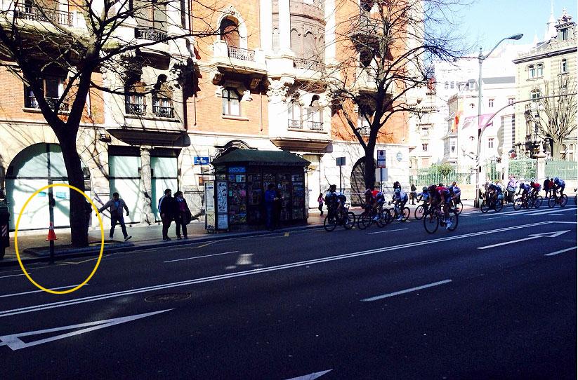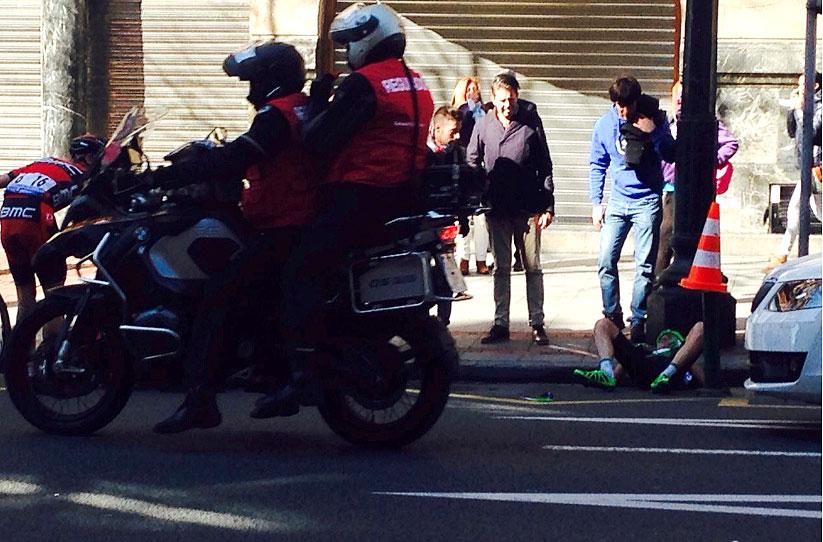 Los profesionales  Sergio Pardilla (Caja Rural-Seguros RGA), Peter Stetina (BMC), Adam Yates (Orica) y Nicolas Edet (Cofidis) no tendrían que haber pasado la noche ingresados en los hospitales bilbaínos de Basurto y Cruces tras no poder concluir la primera etapa de la Vuelta al País Vasco. Pero sí lo hicieron. Fueron los peor parados de una caída en plena recta de meta, en la Gran Vía de la capital vizcaína, por culpa de unos bolardos mal señalizados, contra los que impactaron y que han causado una honda indignación en el pelotón y el mundo ciclista en general porque la organización de la ronda vasca -perteneciente al UCI World Tour- lo podría haber evitado adoptando mejores medidas de seguridad.