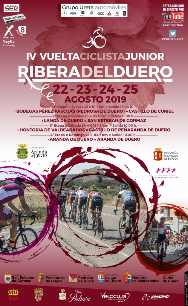 La Vuelta Ciclista a la Ribera del Duero comienza este jueves 22 de agosto. La ronda llega a su IV edición consolidada en el calendario júnior como una referencia nacional en su categoría y está organizada por la concejalía de deportes del Ayuntamiento de Aranda y el impulso de la Ruta del Vino Ribera del Duero.