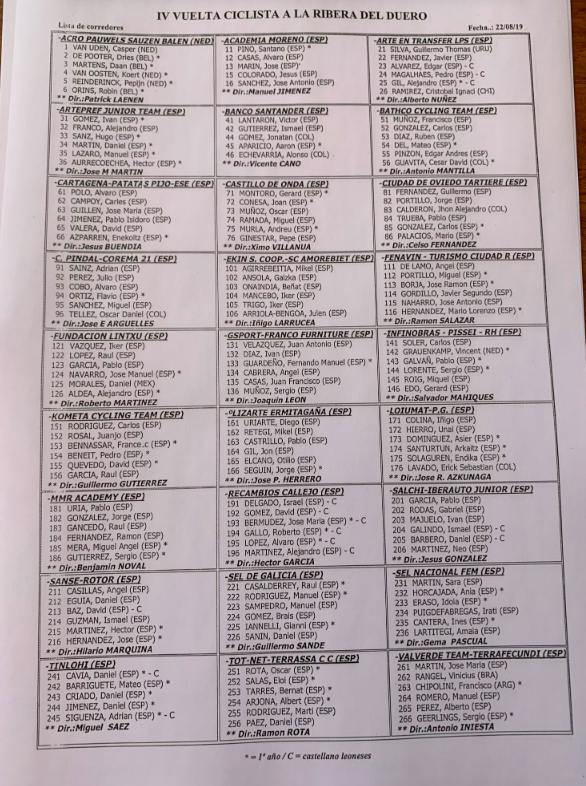 Segunda victoria parcial del neerlandés Casper Van Uden (ACR) en el sprint de la última de etapa con final en Aranda de Duero y que ponía el colofón final a la Vuelta Ribera Júnior 2019. Ronda castellano leonesa que ha conseguido el sexitano Carlos Rodríguez (Kometa), logrando dos triunfos y la clasificación general final por delante del propio Van Uden, segundo a 42″, y de su compañero de equipo Raúl García, a 1’40» terminando en el tercer cajón del podio.