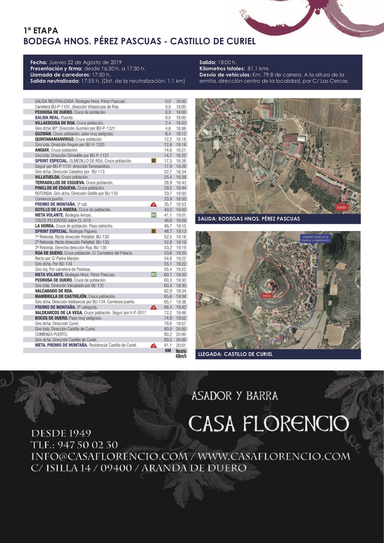 Por delante, cuatro jornadas de ciclismo que maridan con una zona enoturística de indiscutible valor cultural y patrimonial y un exigente recorrido diseñado por los responsables de la prueba. En esta ocasión son los castillos, referentes históricos de nuestra comunidad, los que protagonizarán las etapas de esta vuelta: Curiel de Duro, Langa de Duero, San Esteban de Gormaz o Peñaranda de Duero, serán los escenarios históricos que hermanarán la historia y la cultura de nuestra comunidad, con la modernidad de un deporte que cada vez se gana más el respeto de todos los aficionados.
