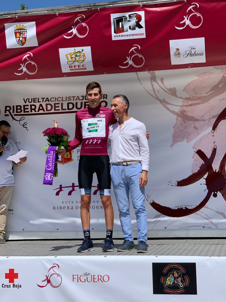 Para el Kometa Cycling Team esta segunda etapa en la Ribera del Duero tuvo otra lectura, la del gran trabajo de Pedro Beneit y David Quevedo en favor de Francesc Bennassar. Cesc había pinchado a la altura del kilómetro 30 y tanto el alicantino como el cántabro contribuyeron a que el balear remontase posiciones en la etapa y no se quedase solo en un momento en el que la carrera se rompió en muchísimos grupos.