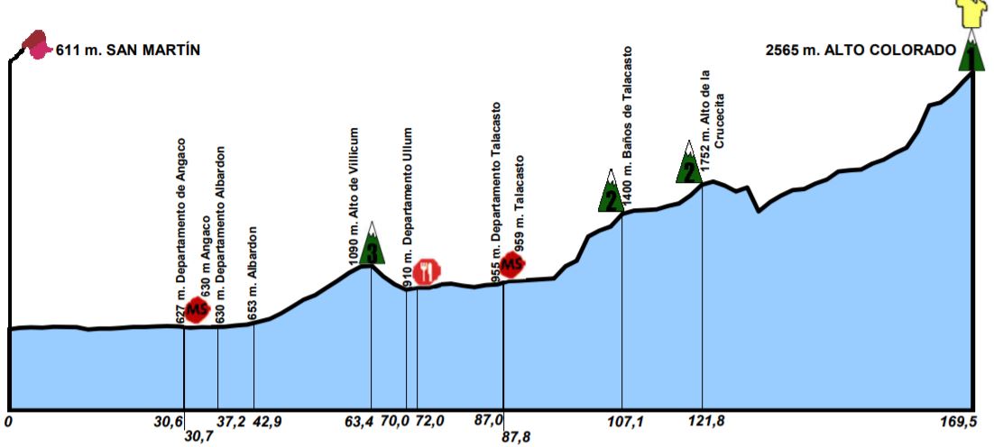 Con eso, se formó una numerosa fuga con Alex Cano (Coldeportes-Claro), Adrián Richeze (Vírgen de Fátima), Daniel Eaton (United HealthCare), Daniel Juárez (Mardan), Alan Presa (Uruguay), Pablo Alarcón (Canels), José Santoyo (Canels) y Robinson Oyola (Medellín-Inder) que el pelotón siempre tuvo controlada y que terminaría de echar abajo ya dentro de los últimos 20 kilómetros de carrera.