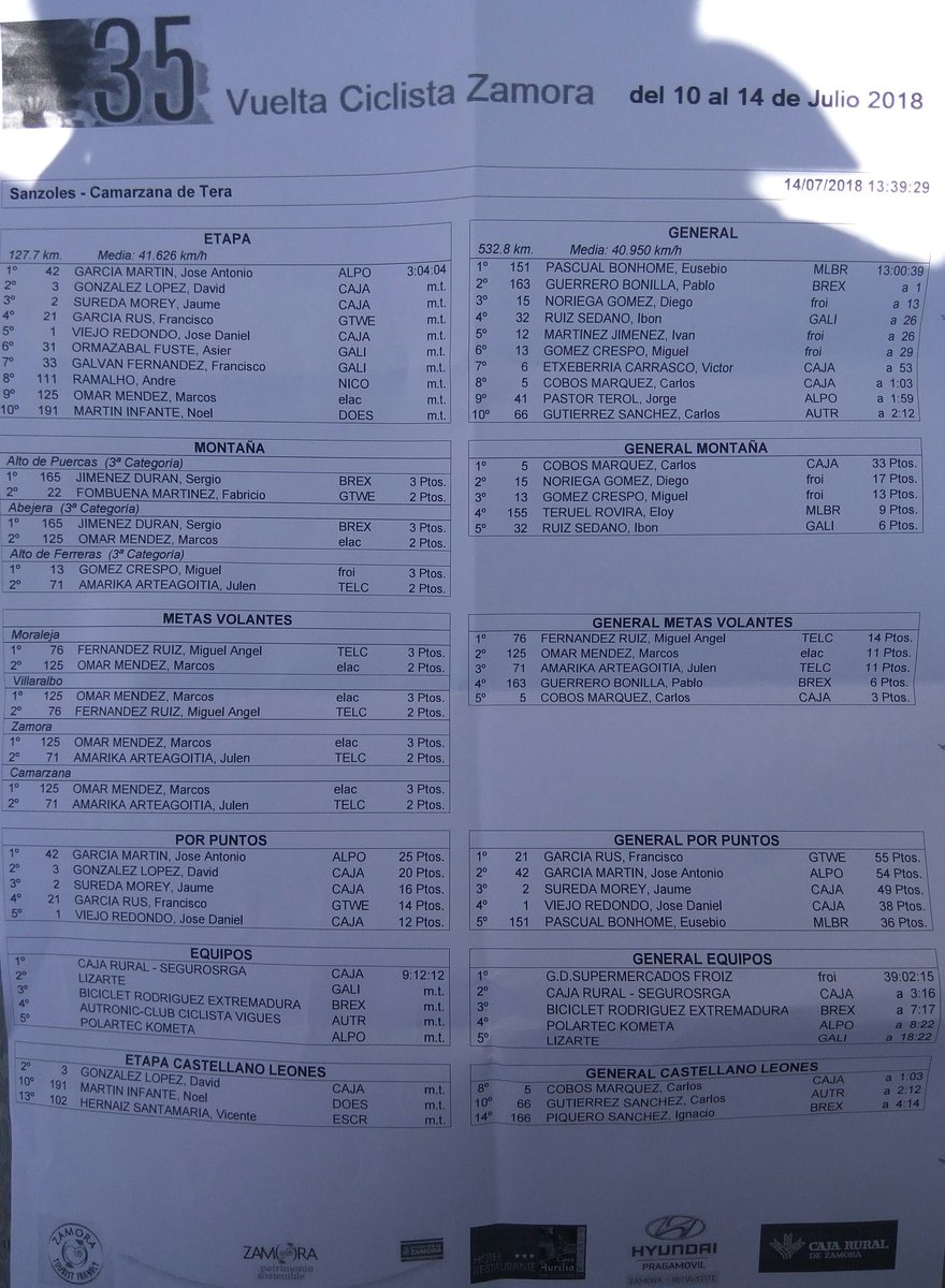 Eusebio Pascual (Mutua Levante-Bioracer) se ha llevado el triunfo final de la 35ª edición de la Vuelta a Zamora. José Antonio García (Fundación Contador) se ha hecho con la victoria en la cuarta etapa.