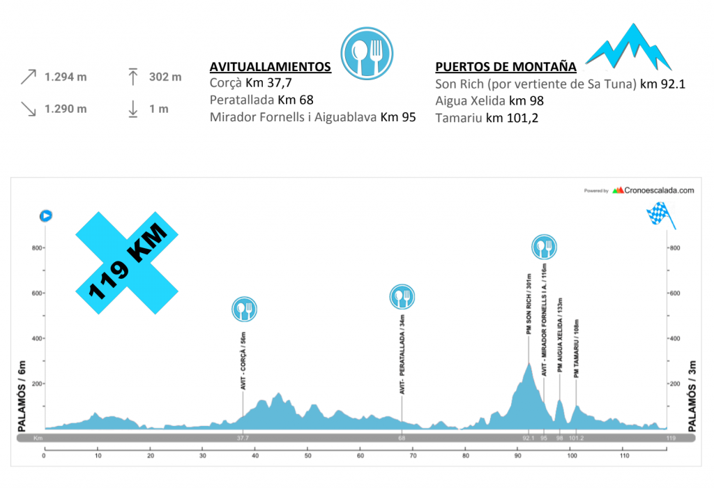 Nunca sin olvidar que es una jornada de cicloturismo, no una competición. Los cicloturistas encontrarán en el penúltimo avituallamiento una «butifarrada» donde seguro que repondrán fuerzas para las durísimas rampas finales del Cap de Begur.