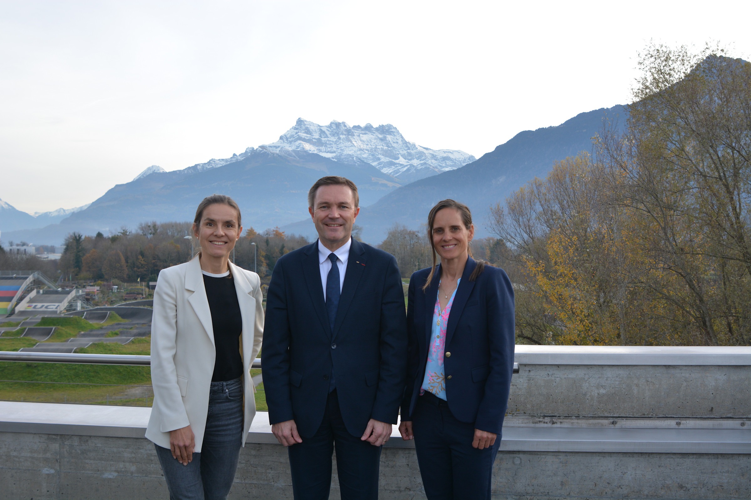 Lappartient flanqueado por Włoszczowska, a su derecha (c) UCI