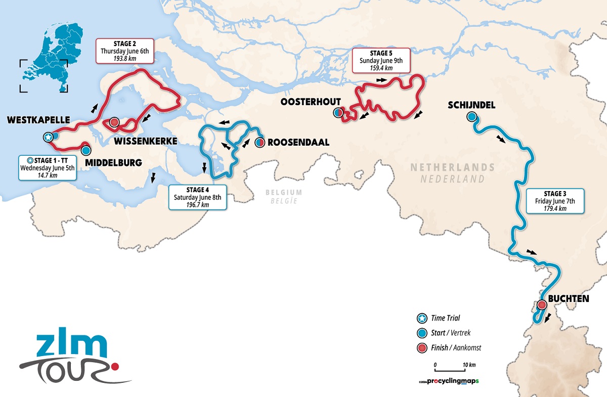 El ZLM Tour se celebrará en 2024 desde el próximo 5 y el 9 de junio. La 34ª edición de la prueba neerlandesa comenzará con dos etapas en la provincia de Zelanda. La localidad de Westkapelle dará el banderazo de salida con una contrarreloj individual de 14,7 kilómetros. Las próximas cuatro etapas transcurren por un terreno completamente llano que llevarán a los ciclistas por Wissenkerke, Buchten, Roosendaal y finalmente a Oosterhout dónde igual que la campaña pasada, terminará la carrera.